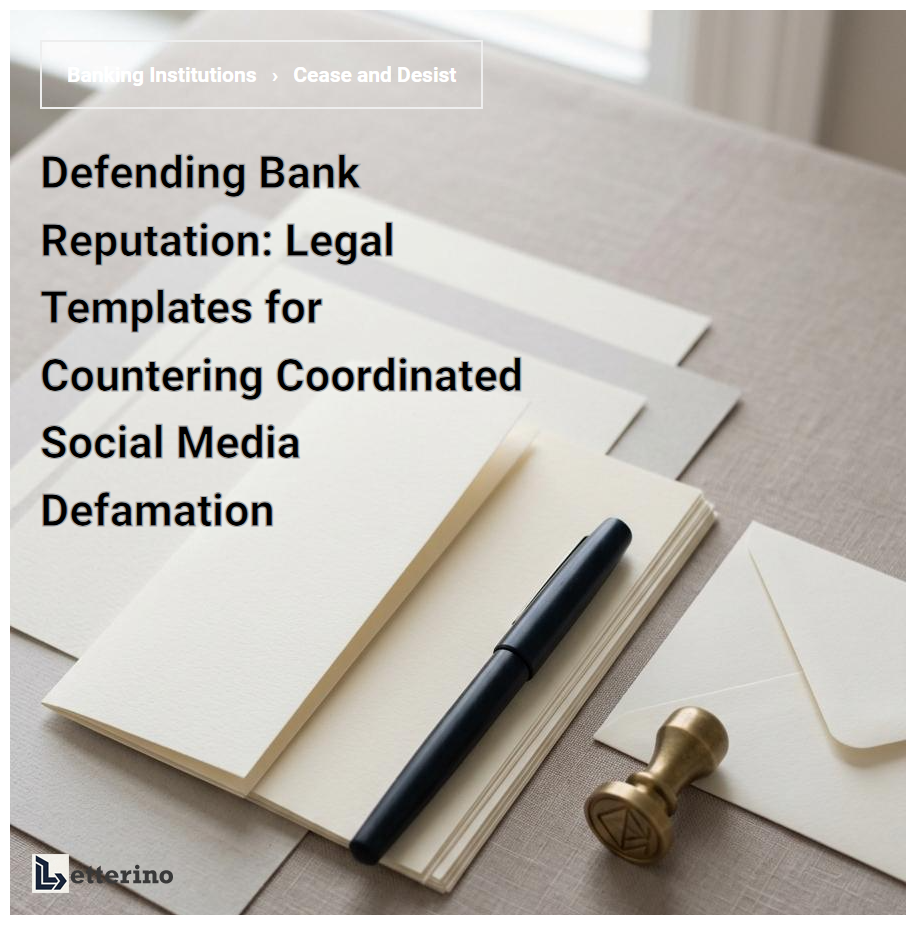 A Cease and Desist Letter is a formal legal notice used to stop bank impersonation and the operation of phishing domains. This document demands that malicious actors immediately terminate unauthorized use of protected trademarks and shut down fraudulent websites designed to steal sensitive data. It serves as a critical first step in brand protection, establishing a legal paper trail for potential litigation. By targeting domain registrars and hosting providers, these letters effectively mitigate financial fraud and safeguard consumer trust against deceptive cybersecurity threats and identity theft schemes.