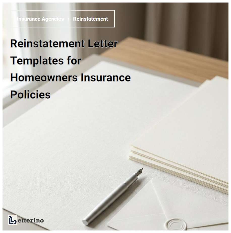 A homeowners insurance policy reinstatement letter is a formal document requested to restore coverage after a cancellation or lapse. To regain protection, the homeowner must typically submit a statement of no loss, confirming no claims occurred during the inactive period. Promptly addressing past-due premiums and underwriting requirements is essential to avoid permanent policy termination. Reinstatement ensures continuous financial security for your property, preventing a coverage gap that could lead to higher future rates or personal liability for damages occurring while the policy was void.
